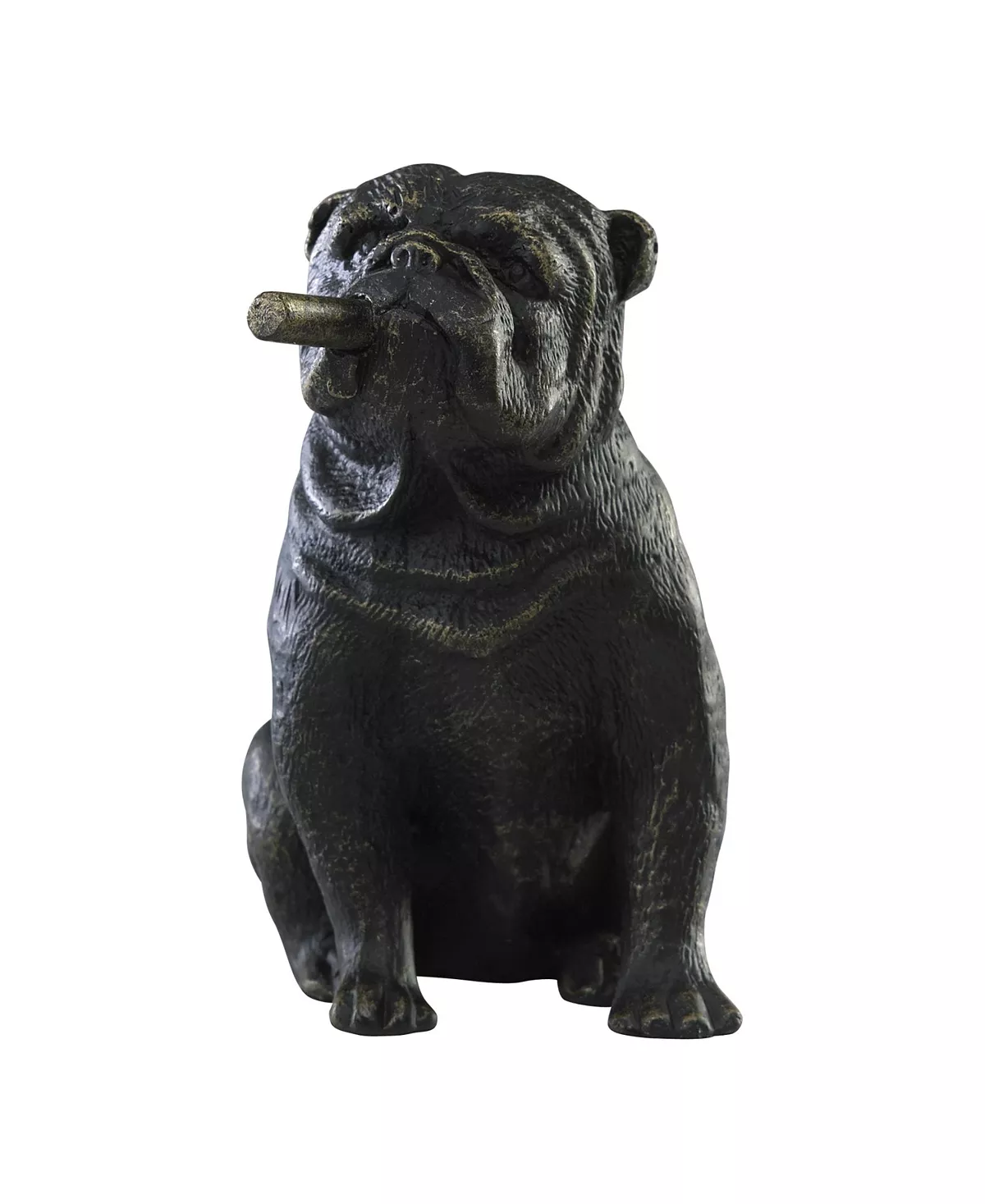 An homage to Churchill adds a distinctive whimsy and character to this bulldog inspired sculpture. A playful addition to a formal English country inspired decor, this old world finished piece is a humorous yet stunning piece.