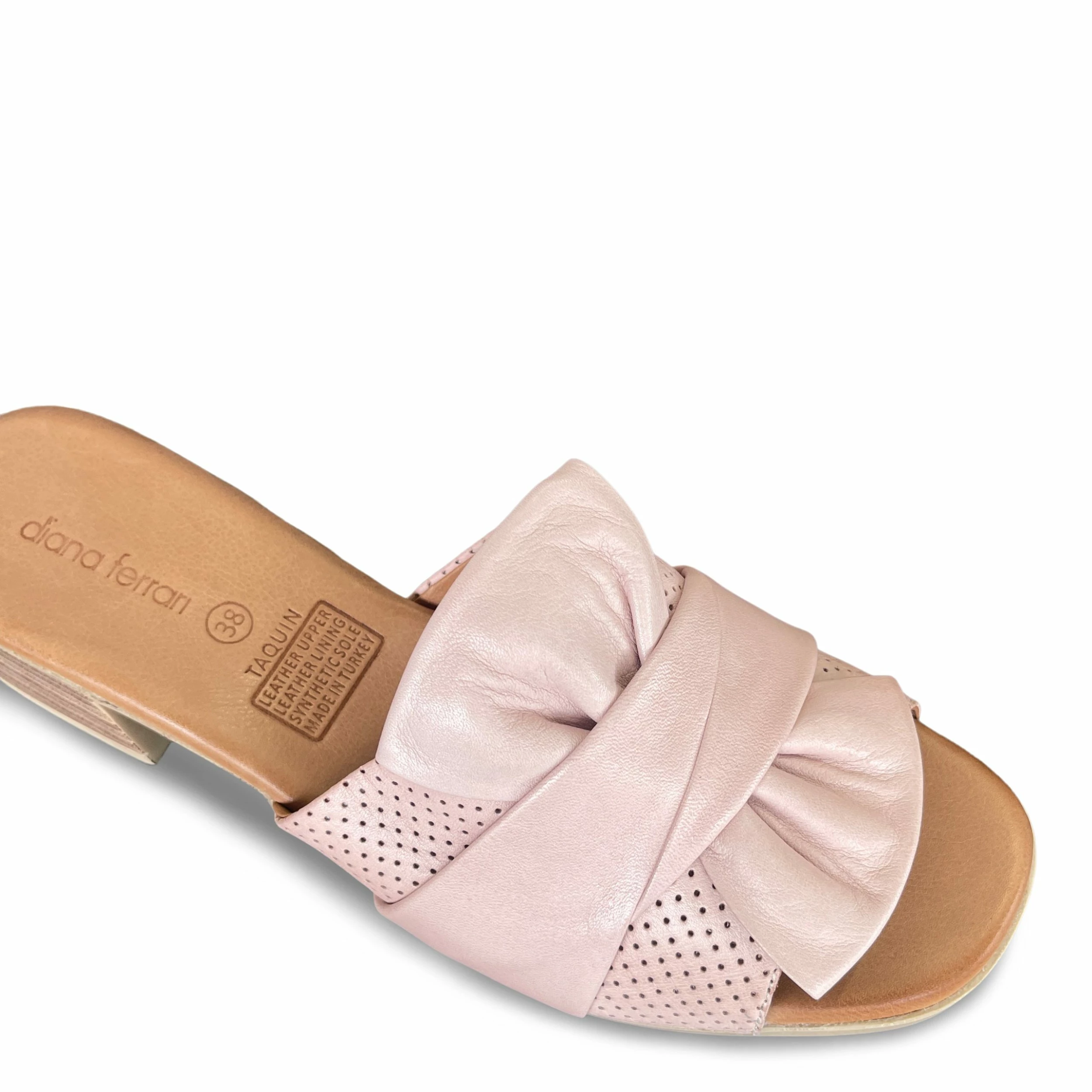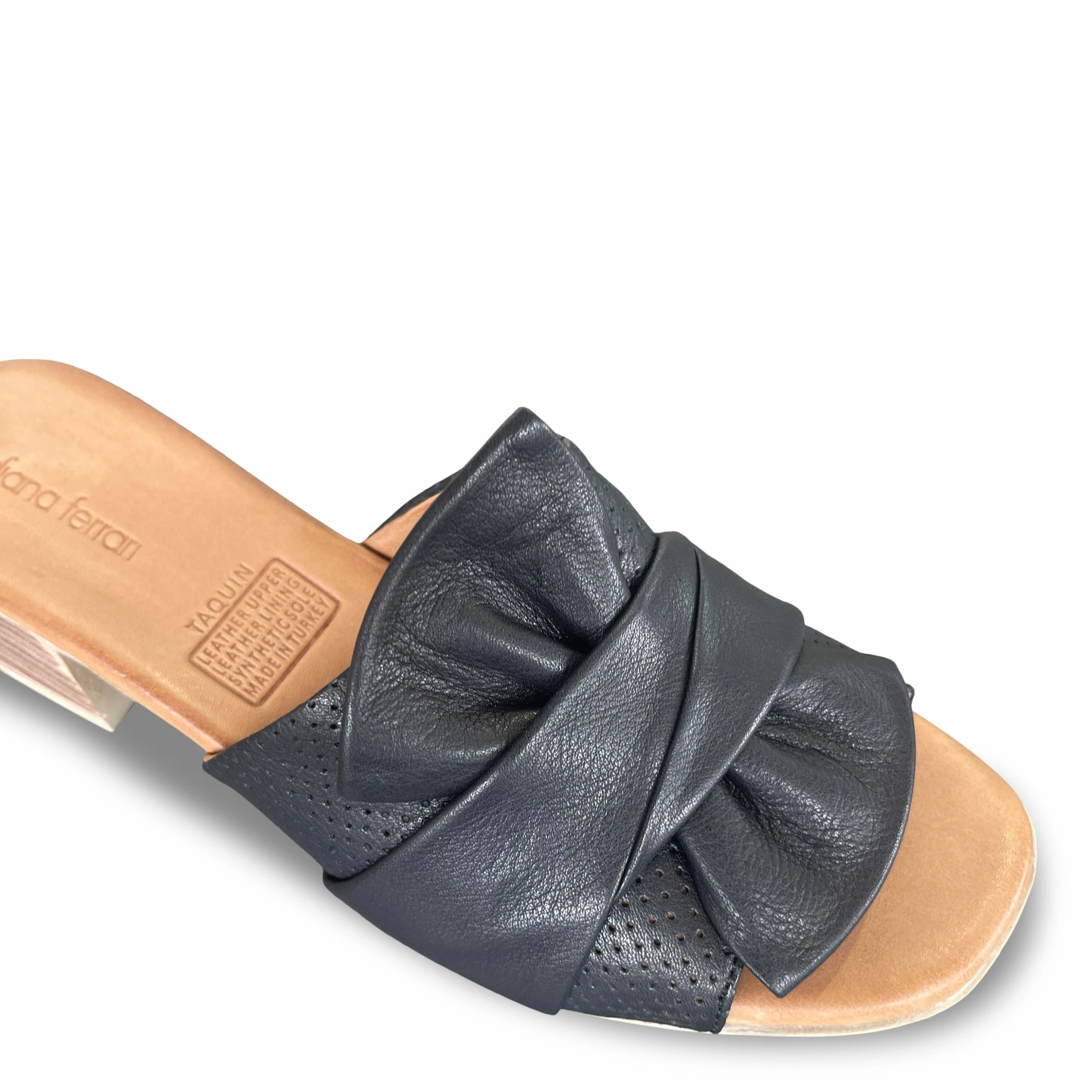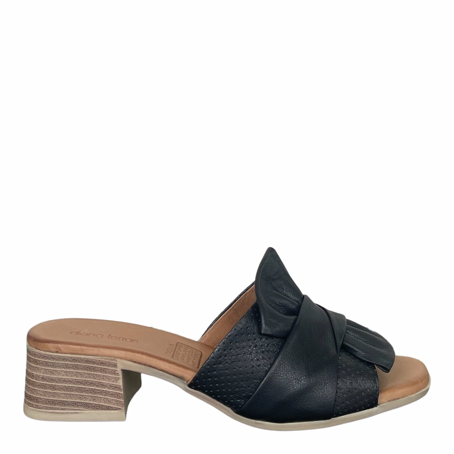 Give it up for these chic leather mules by Diana Ferrari. TAQUIN elevates any summer look book thanks to its elegant slip-on style and low stacked heel.