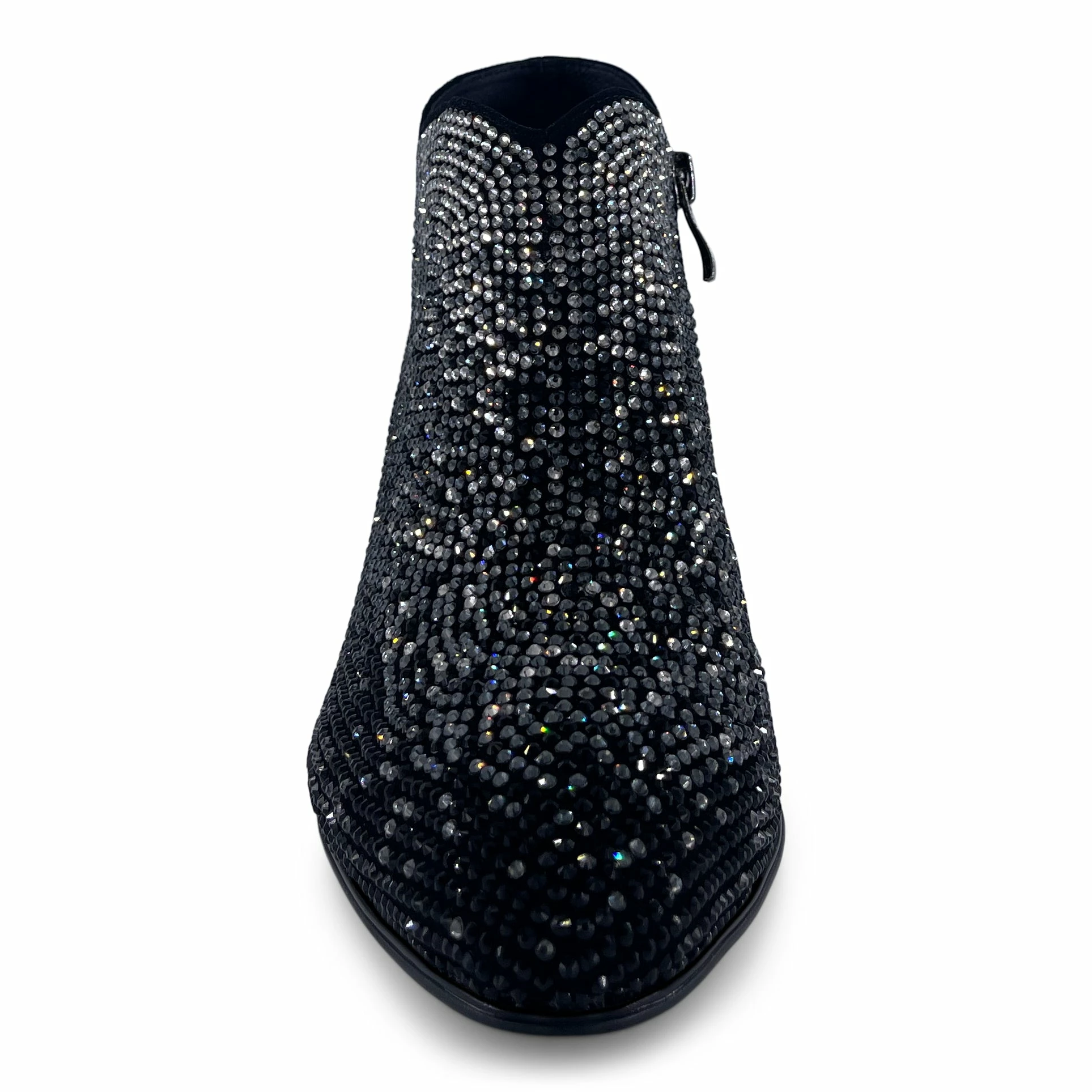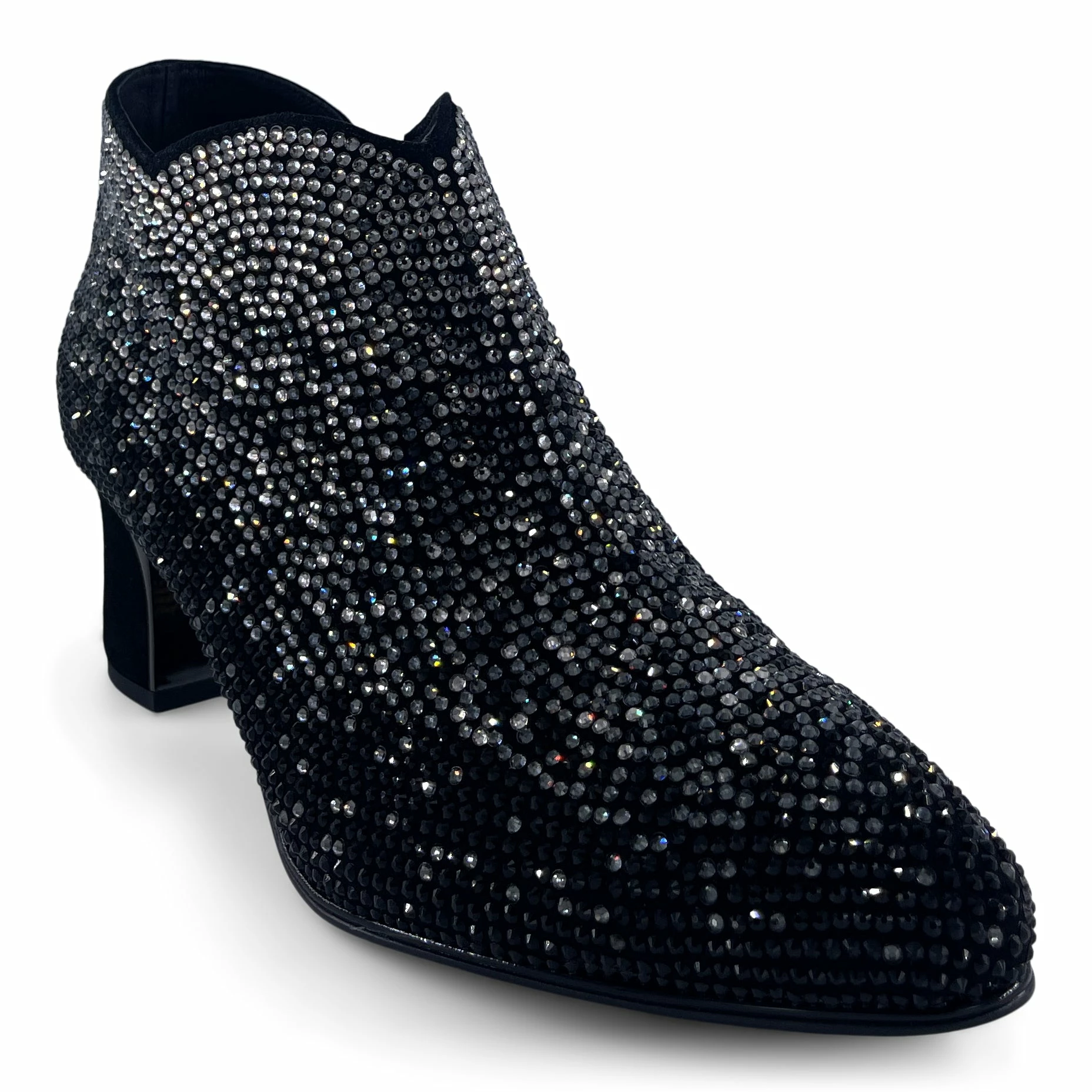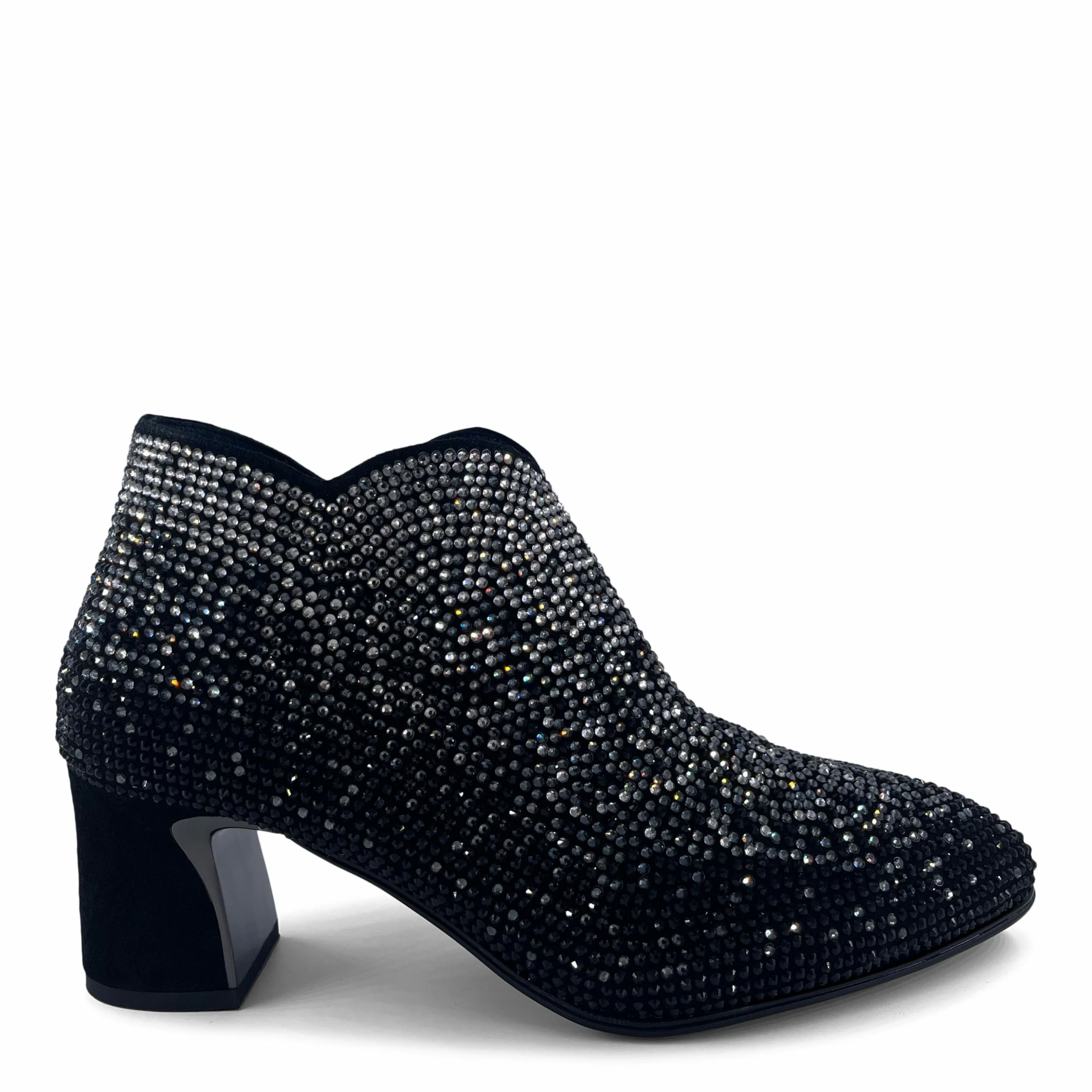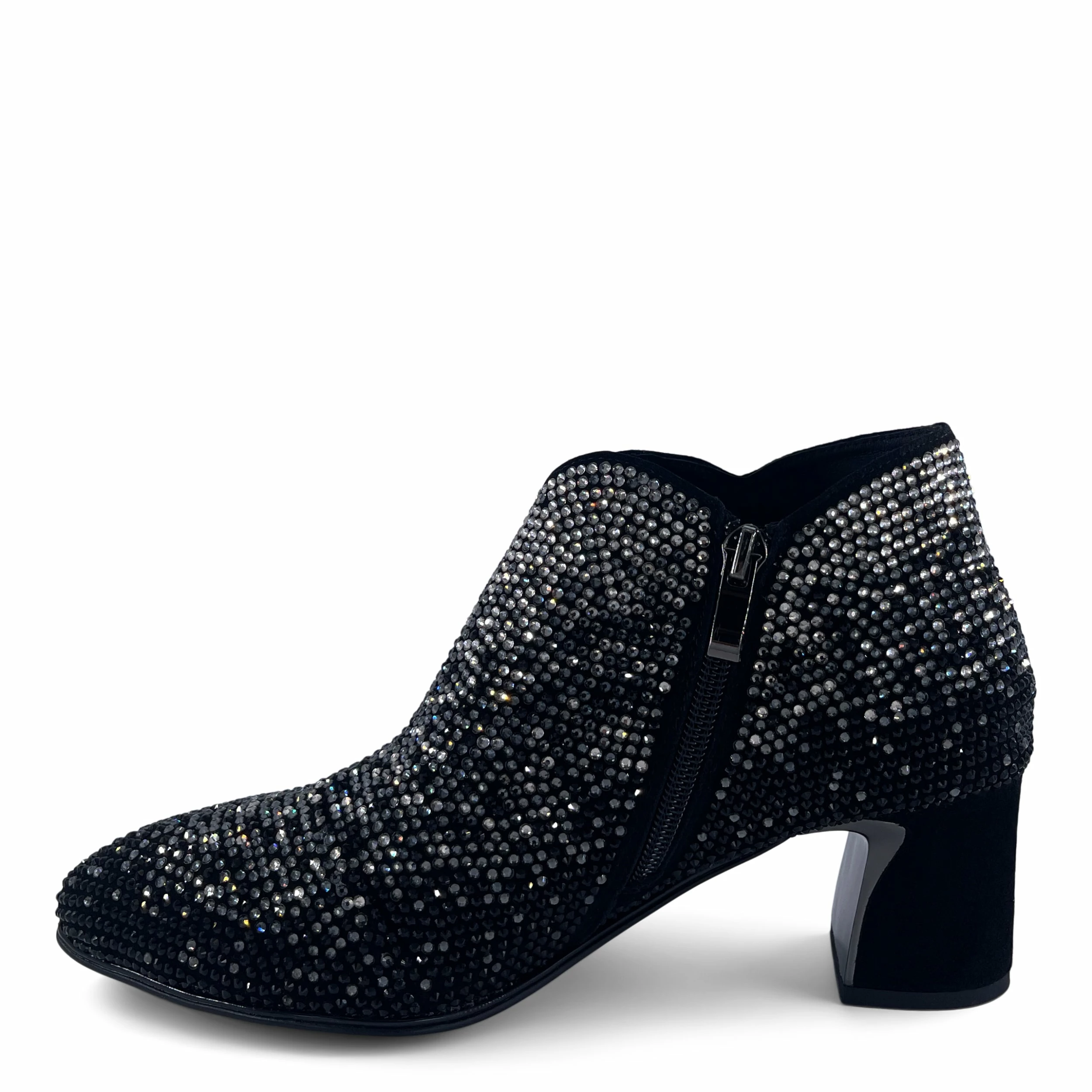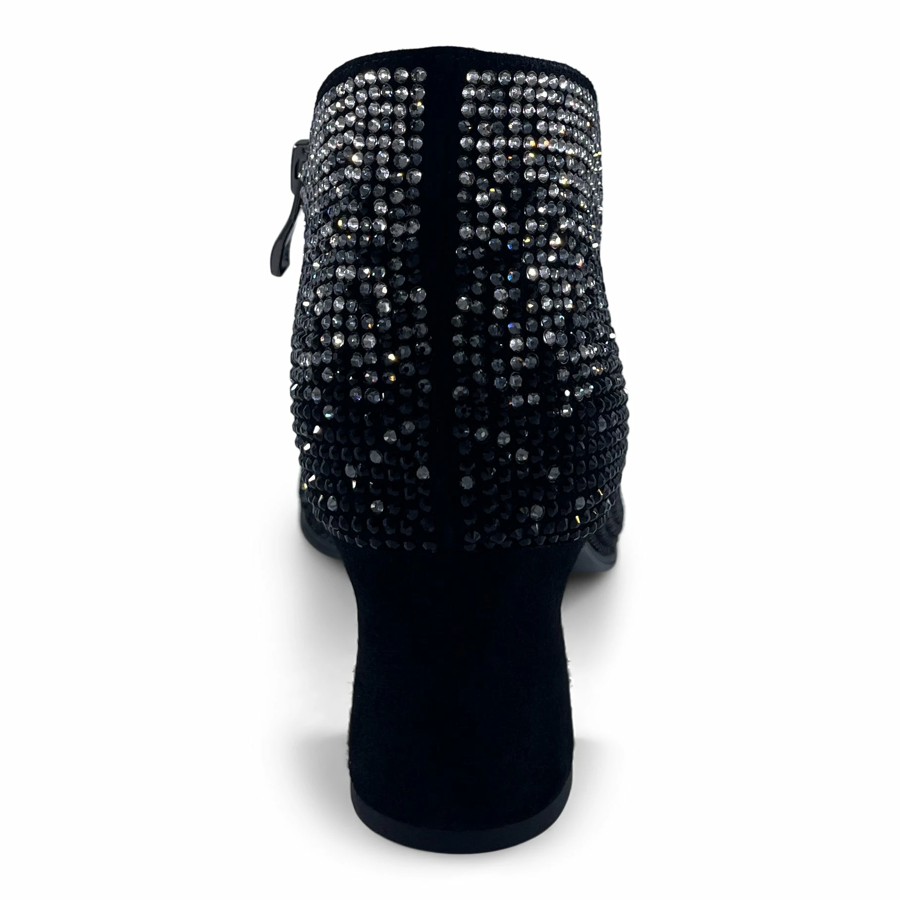 Make an entrance with the truly outstanding JONSY boot by Django & Juliette. Featuring a soft suede upper picked out in glittering rhinestones, this ultra-glamorous zip-up design rests on a block heel with metallic trim. It’s the perfect party option, but you can easily enjoy it by day with simple denim and sparkly layered jewellery.