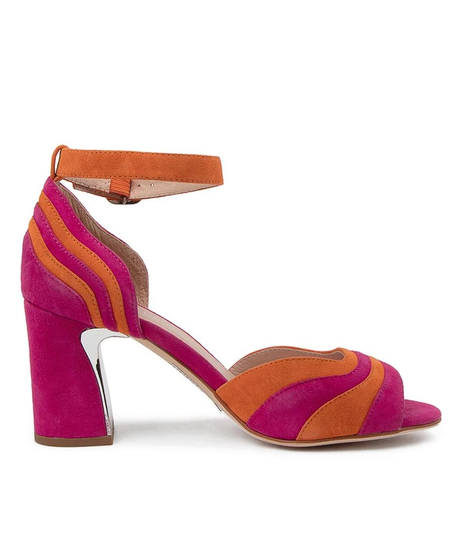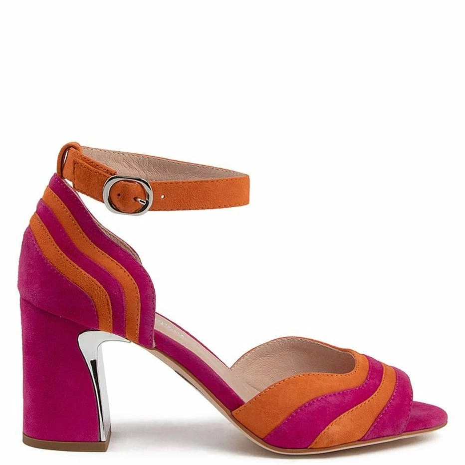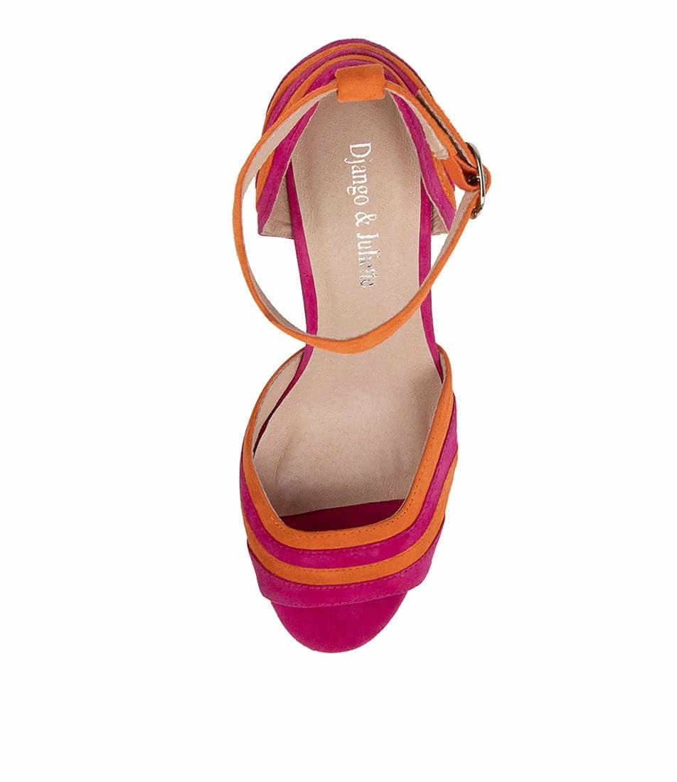 Resting on a sturdy heel with gleaming metallic detail, KAGE by Django & Juliette is the perfect way to spice up an office outfit or cap off your next wedding-guest ensemble. Crafted from sumptuous soft suede with multicolour seamed detail, this peep-toe pump is a kaleidoscopic rainbow must-have.