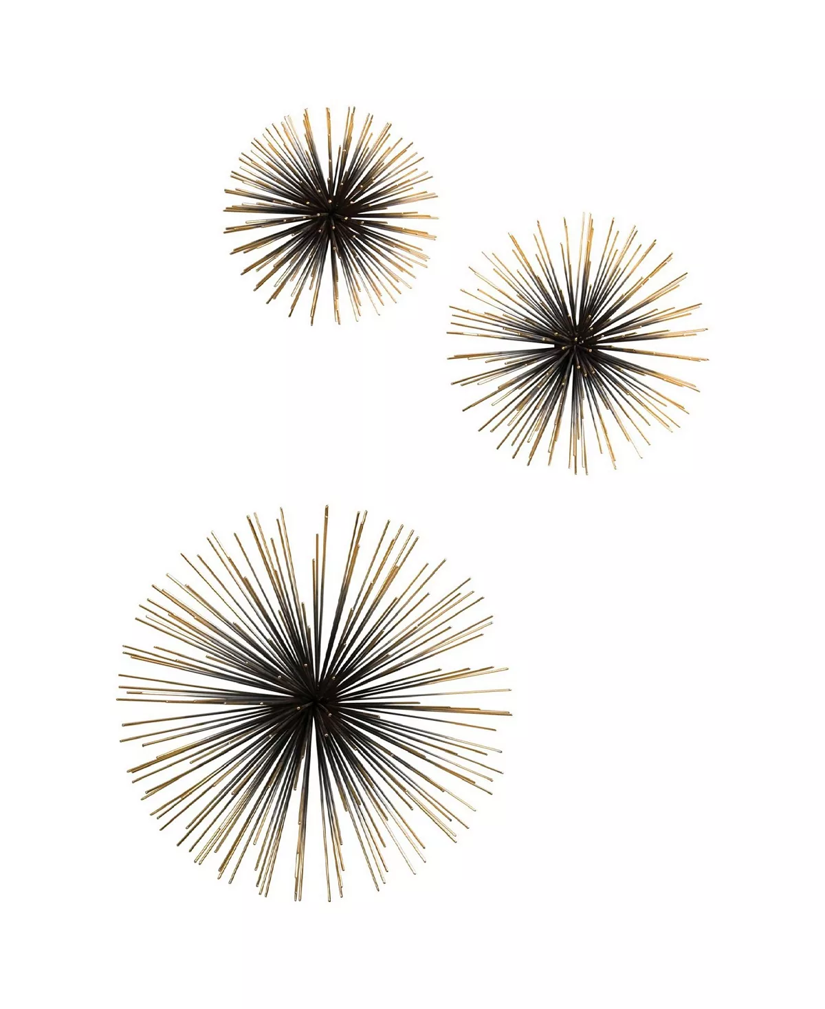 Inspired by mid century antiques, the boom sculptures are individual so they can be hung in many configurations. Iron with gold tipped stems, these attach to the wall with a flat bracket.
