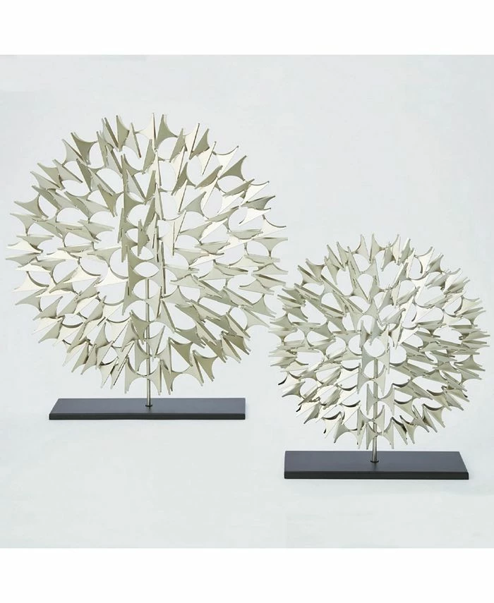 These sculptures were inspired by a found fragment from a vintage sculpture. The use of negative space gives these a light feel and a versatility of application.