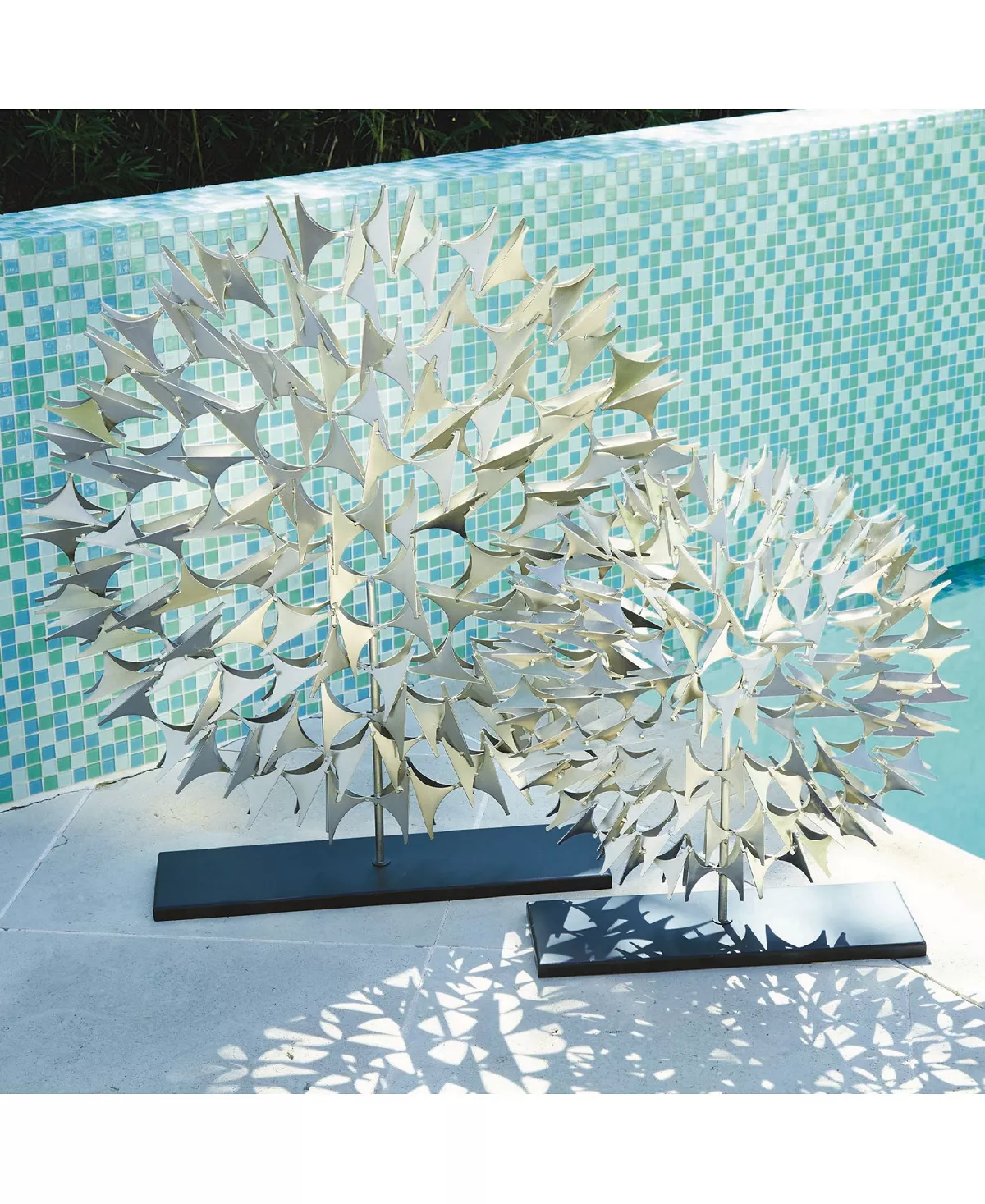 These sculptures were inspired by a found fragment from a vintage sculpture. The use of negative space gives these a light feel and a versatility of application.