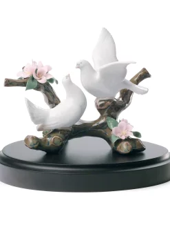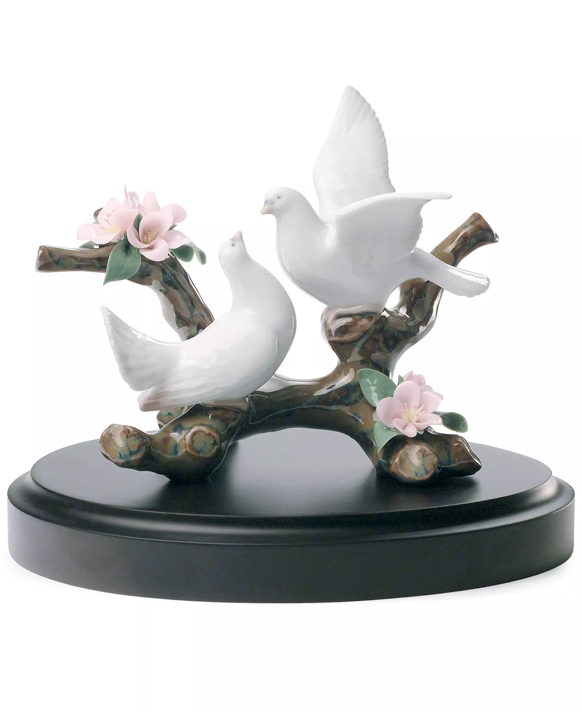 Find peace in the graceful doves and pink blooms of this Lladro collectible. A serene nature scene, handcrafted in glazed porcelain.