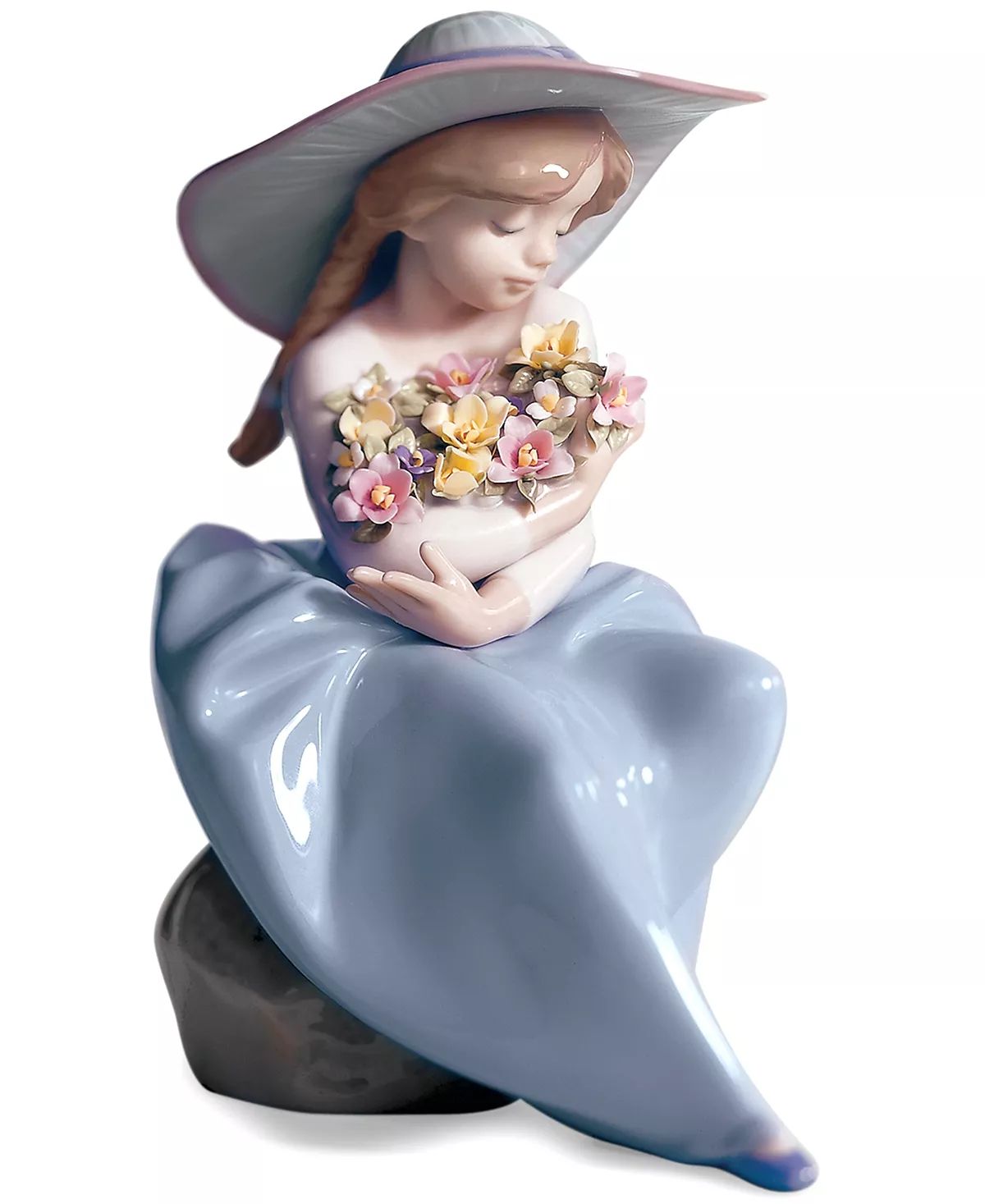 This little girl has her hands full. Admiring a cluster of beautifully colored blooms, the Fragrant Bouquet figurine is the essence of spring in glazed Lladro porcelain.