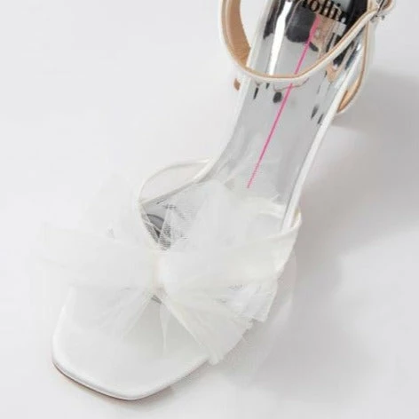 Top the best-dressed list with these dreamy heeled sandals by Mollini. Frothy tulle and delicate straps give QUEENBEE a feminine finish that is calling all brides, wedding guests and red carpet queens.
