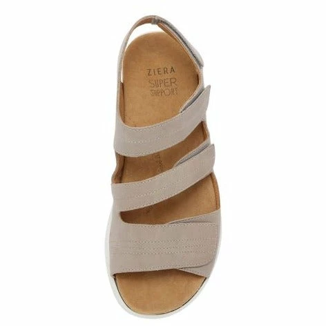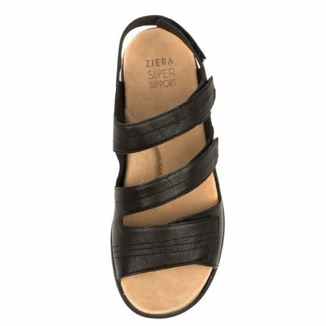 BONNY by Ziera is all you need for everyday comfort. This sturdy leather sandal fastens with convenient riptape straps for an adjustable fit, fitted with a removable Super Support footbed that can be swapped for your own orthotics. This footbed features flexible, shock-absorbing PU with arch support, metatarsal cushioning and a contoured heel cup with a wider, deeper fit for excellent stability. This style features the brand’s XW fit, which offers more room over the front of the foot.